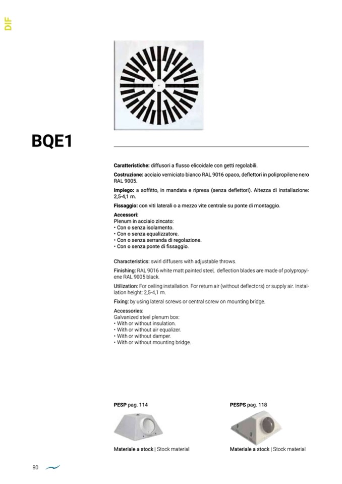 Utilization: For ceiling installation. For return air (without deflectors) or supply air. Instal-