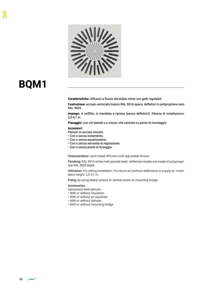 Utilization: For ceiling installation. For return air (without deflectors) or supply air. Instal-