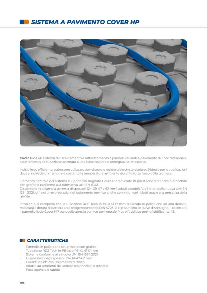 Cover HP è un sistema di riscaldamento e raffrescamento a pannelli radianti a pavimento di tipo tradizionale,