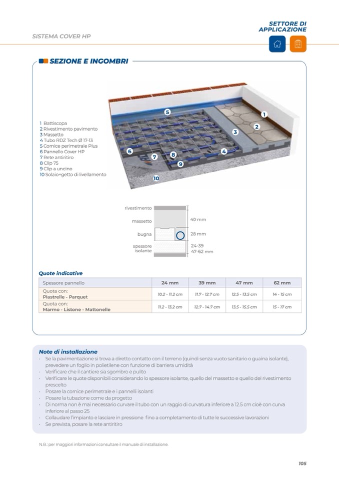 • Verificare le quote disponibili considerando lo spessore isolante, quello del massetto e quello del rivestimento