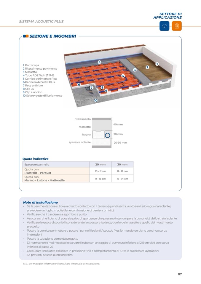 • Verificare le quote disponibili considerando lo spessore isolante, quello del massetto e quello del rivestimento