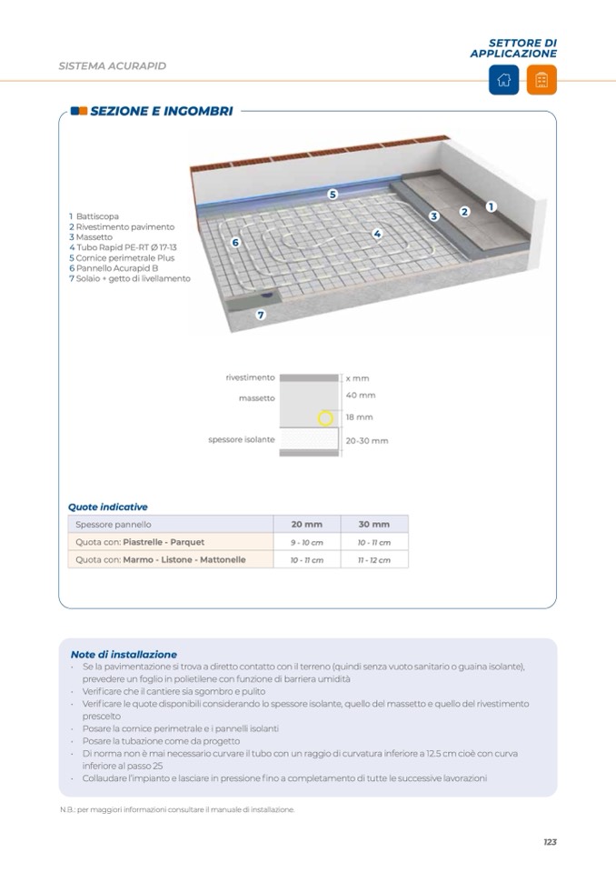 • Verificare le quote disponibili considerando lo spessore isolante, quello del massetto e quello del rivestimento