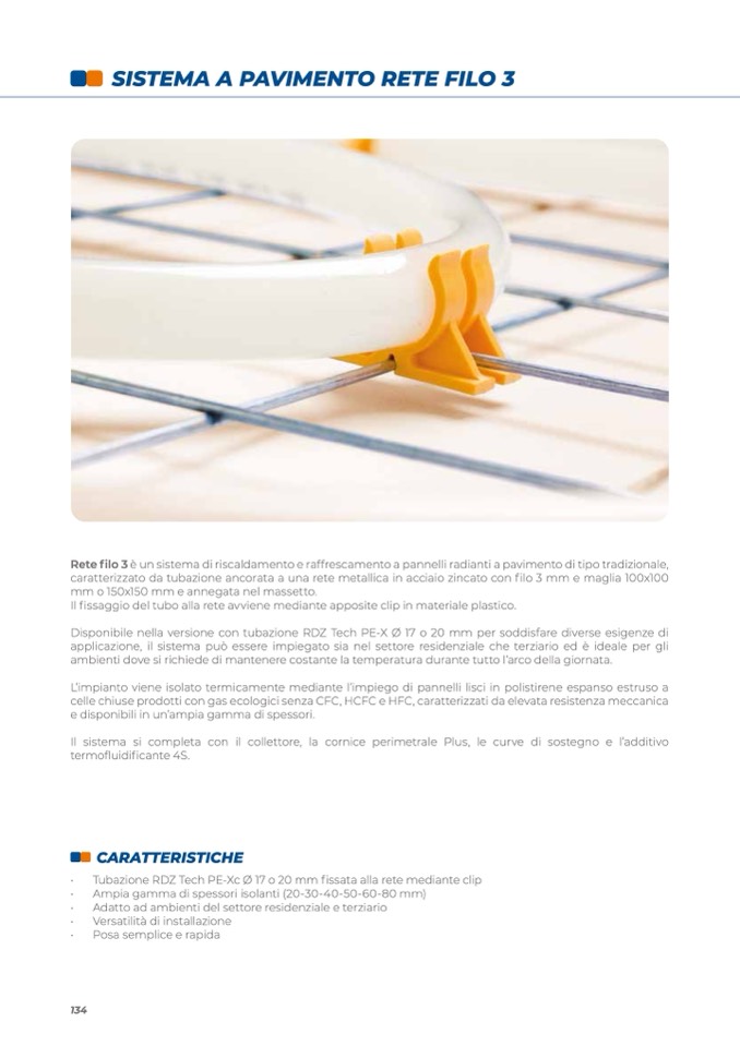 Tubazione RDZ Tech PE-Xc Ø 17 o 20 mm fissata alla rete mediante clip