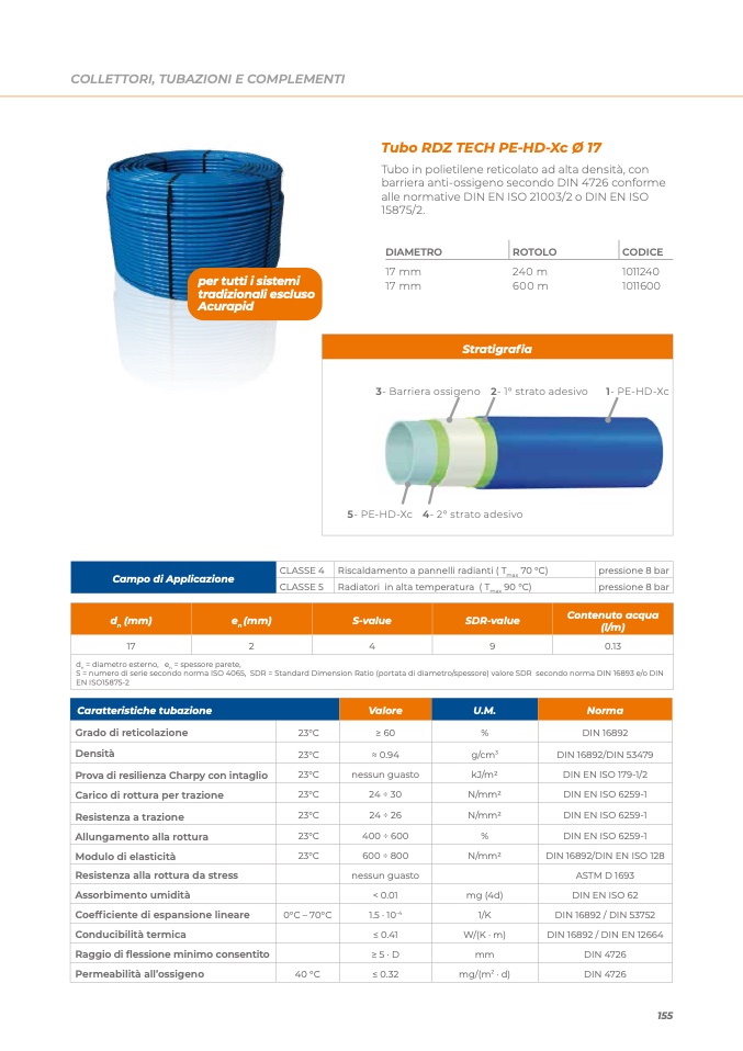 S = numero di serie secondo norma ISO 4065, SDR = Standard Dimension Ratio (portata di diametro/spessore) valore SDR secondo norma DIN 16893 e/o DIN