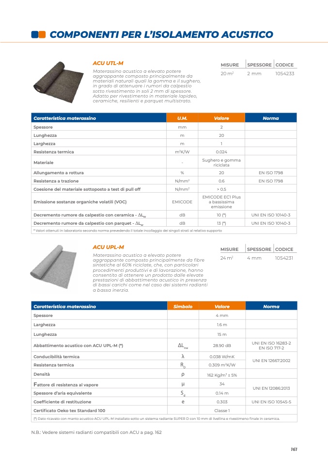 (*) Dato ricavato con manto acustico ACU UPL-M installato sotto un sistema radiante SUPER D con 10 mm di livellina e rivestimeno finale in ceramica.