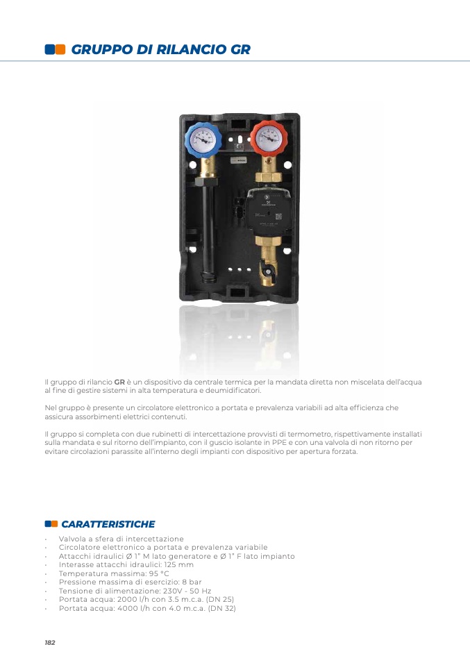 Il gruppo di rilancio GR è un dispositivo da centrale termica per la mandata diretta non miscelata dell’acqua