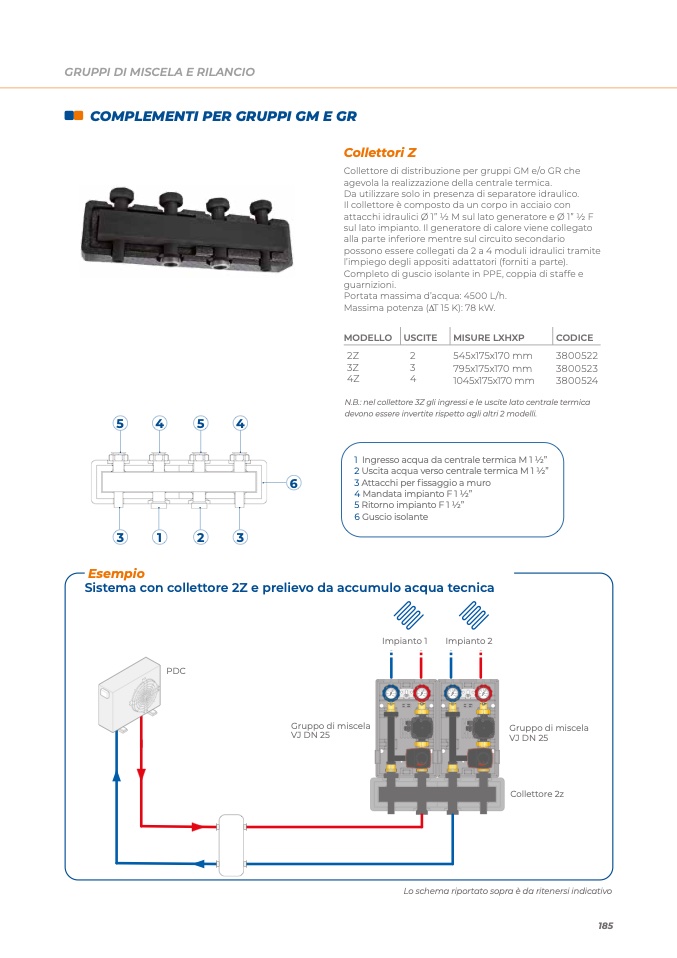 N.B.: nel collettore 3Z gli ingressi e le uscite lato centrale termica
