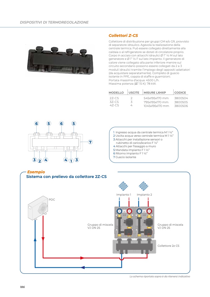 Collettore di distribuzione per gruppi GM e/o GR, provvisto