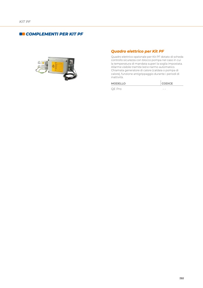Quadro elettrico opzionale per Kit PF dotato di scheda