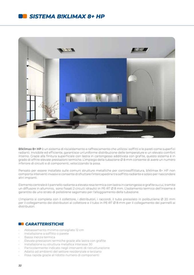 B!klimax 8+ HP è un sistema di riscaldamento e raffrescamento che utilizza i soffitti e le pareti come superfici