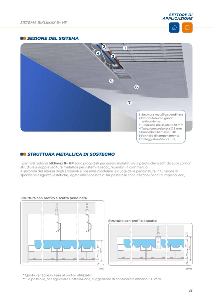 I pannelli radianti b!klimax 8+ HP sono progettati per essere installati sia a parete che a soffitto sulle comuni