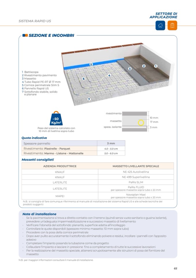 N.B.: si consiglia di fare comunque riferimento al manuale di installazione del sistema Rapid US e alle schede tecniche dei
