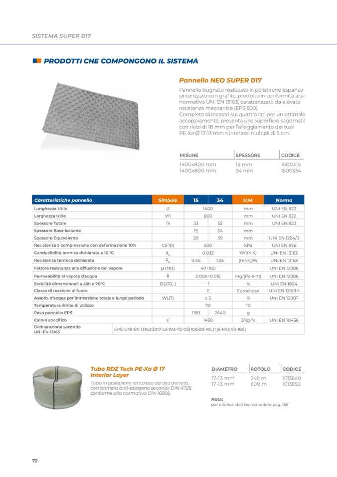 PE-Xa Ø 17-13 mm a interassi multipli di 5 cm.