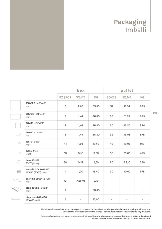 Le informazioni contenute nel presente catalogo sono il più possibile esatte ed aggiornate al momento della stampa, pertanto i dati elencati