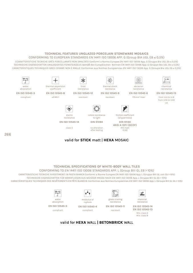 CONFORMING TO EUROPEAN STANDARDS EN 14411 ISO 13006 APP. G (Group BIA UGL EB ≤ 0,5%)