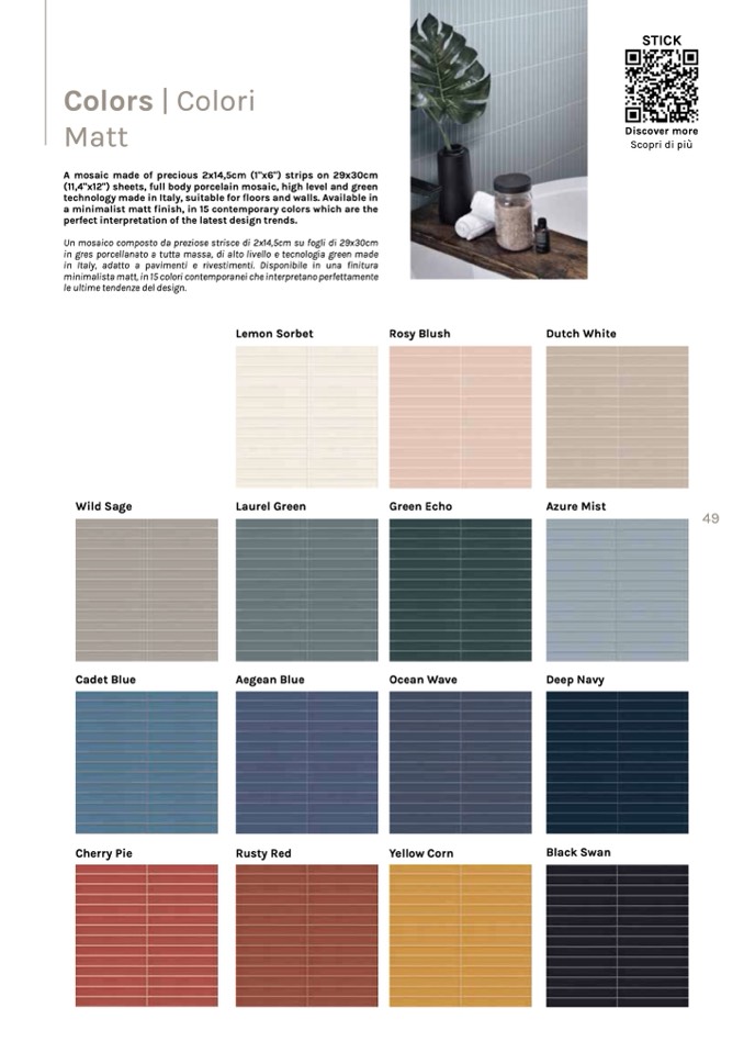 in Italy, adatto a pavimenti e rivestimenti. Disponibile in una finitura