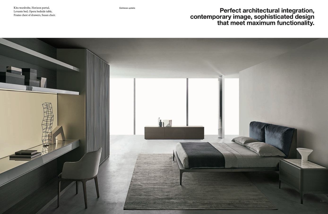 Levante bed, Opera bedside table,