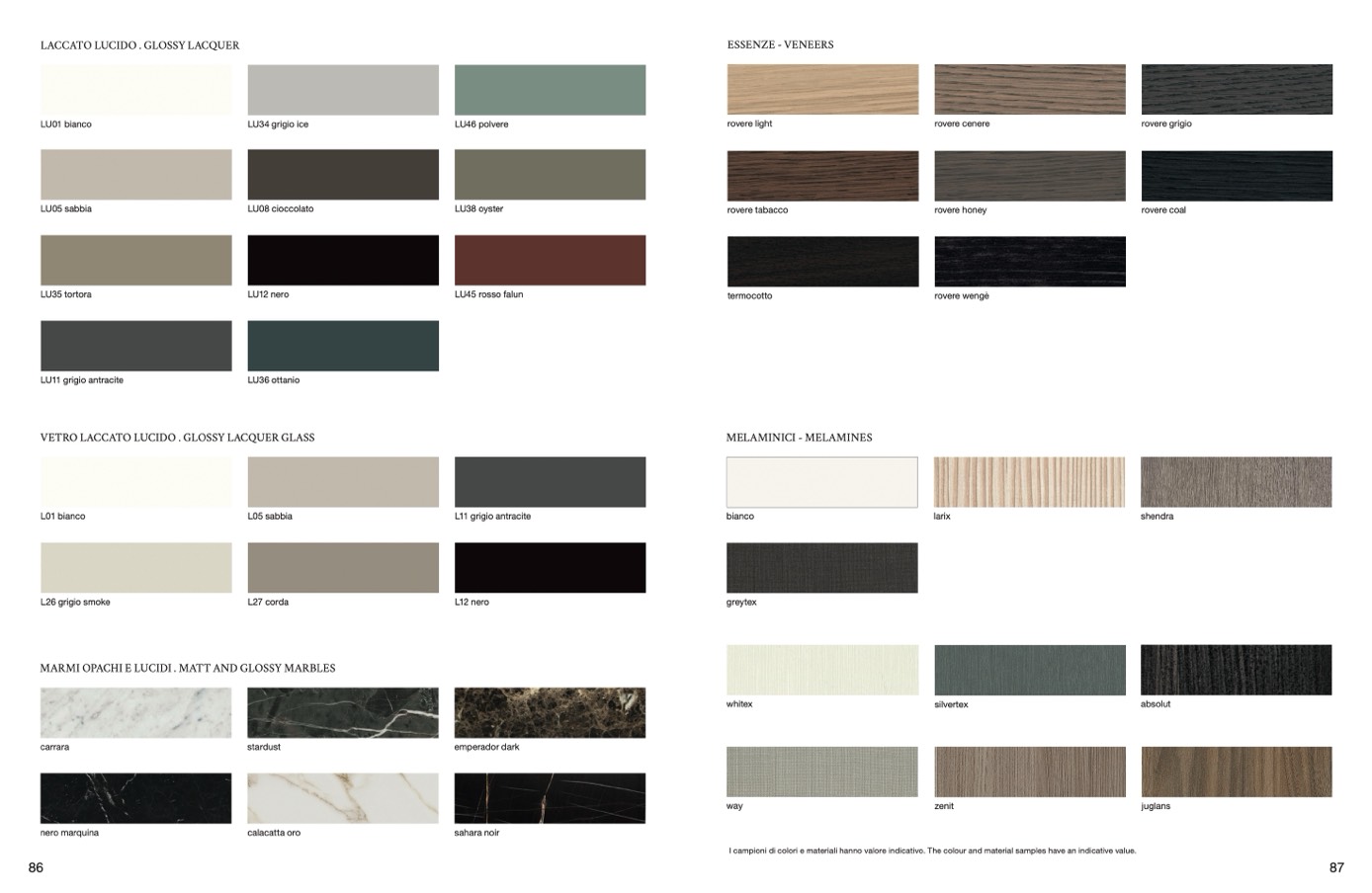 I campioni di colori e materiali hanno valore indicativo. The colour and material samples have an indicative value.