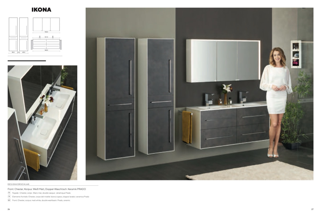 Front: Chester, Korpus: Weiß Matt, Doppel-Waschtisch: Keramik PRADO
