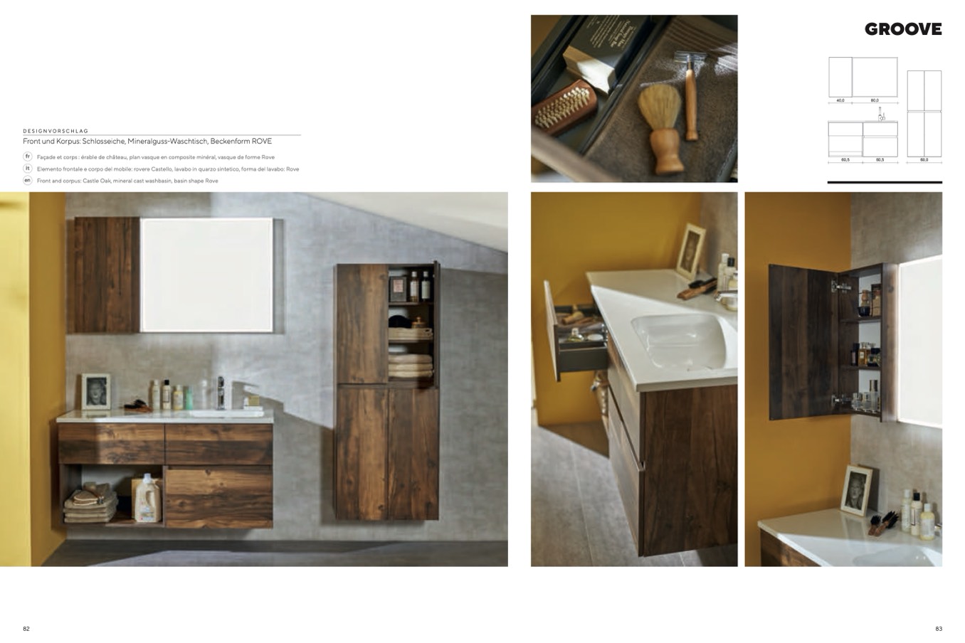 Front und Korpus: Schlosseiche, Mineralguss-Waschtisch, Beckenform ROVE