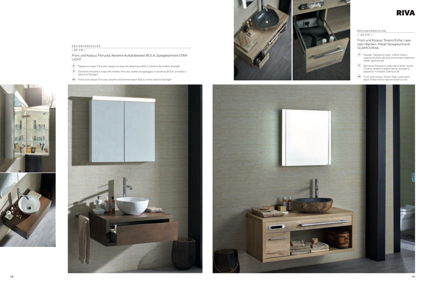 Front und Korpus: Ferrusta, Keramik-Aufsatzbecken BOLA, Spiegelschrank STAR-