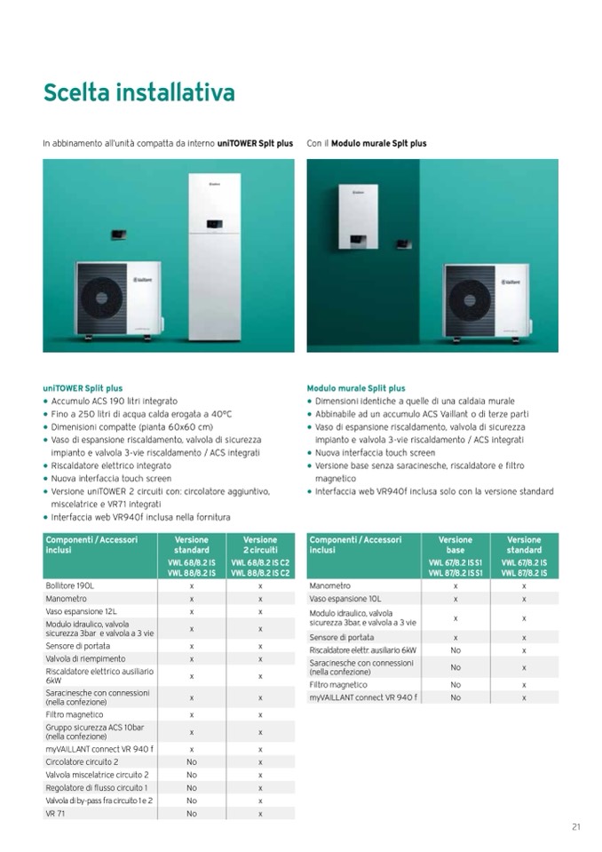 ⬤ Abbinabile ad un accumulo ACS Vaillant o di terze parti