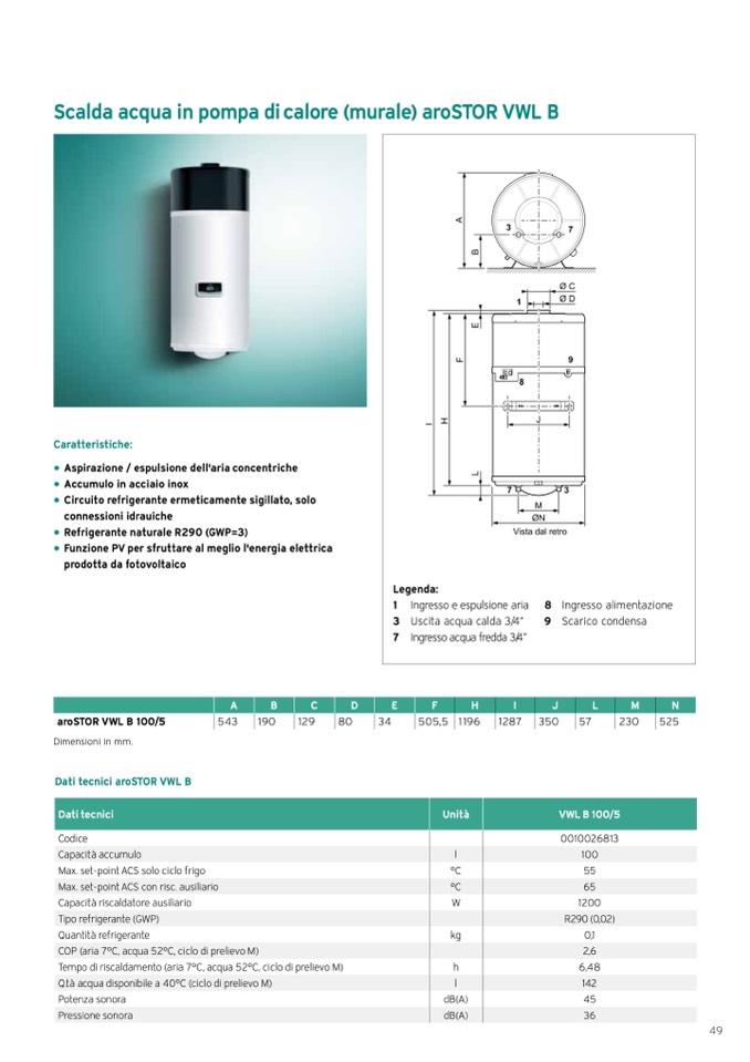 Dati tecnici aroSTOR VWL B