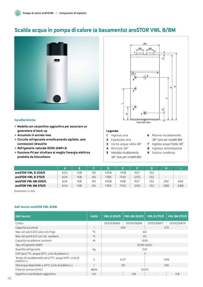 Dati tecnici aroSTOR VWL B/BM