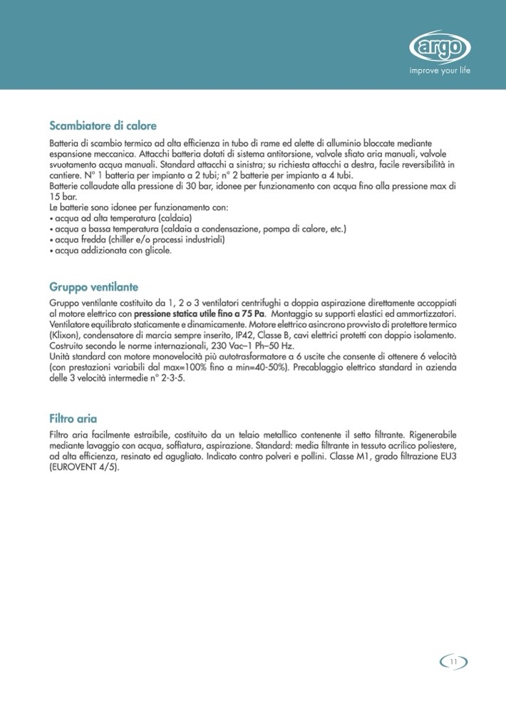 (con prestazioni variabili dal max=100% fino a min=40-50%). Precablaggio elettrico standard in azienda