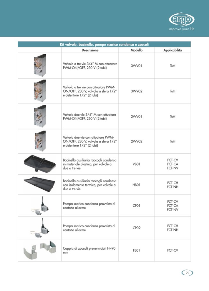 Kit valvole, bacinelle, pompe scarico condensa e zoccoli