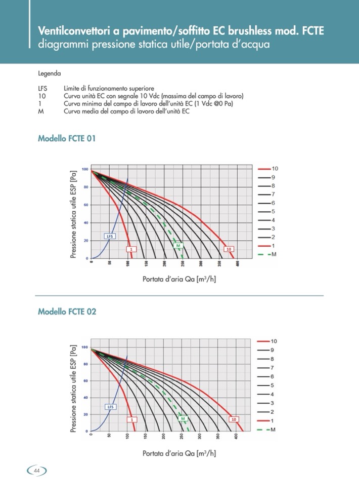 Curva unità EC con segnale 10 Vdc (massima del campo di lavoro)
