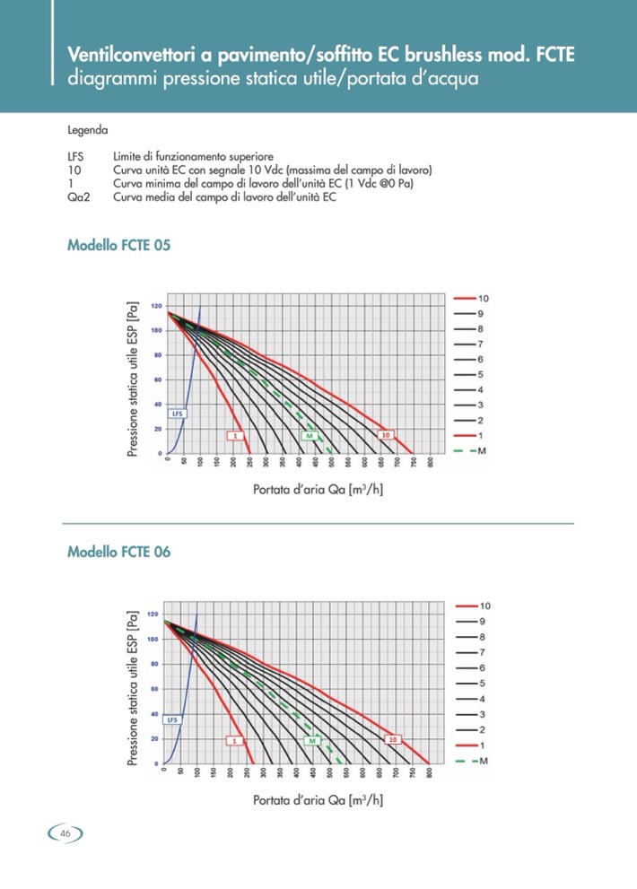 Curva unità EC con segnale 10 Vdc (massima del campo di lavoro)