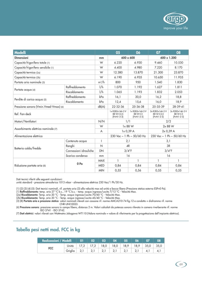 (3) (8) Portata aria e pressione statica: valori nominali rilevati con cassone rif. norme AMCA210-74 fig.12 e condotto + diaframma rif. norme