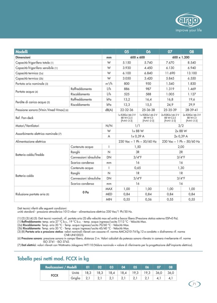 (1) Raffreddamento: temp. aria 27 °C b.s., 19 °C b.u. - temp. acqua ingresso/uscita 7/12 °C - Velocità Max.