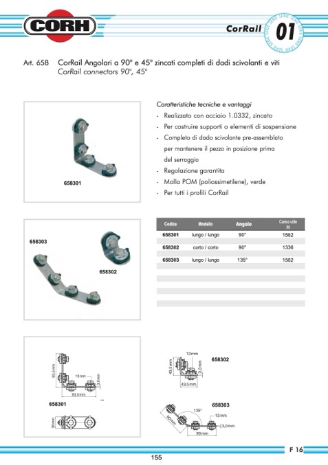 CorRail Angolari a 90° e 45° zincati completi di dadi scivolanti e viti