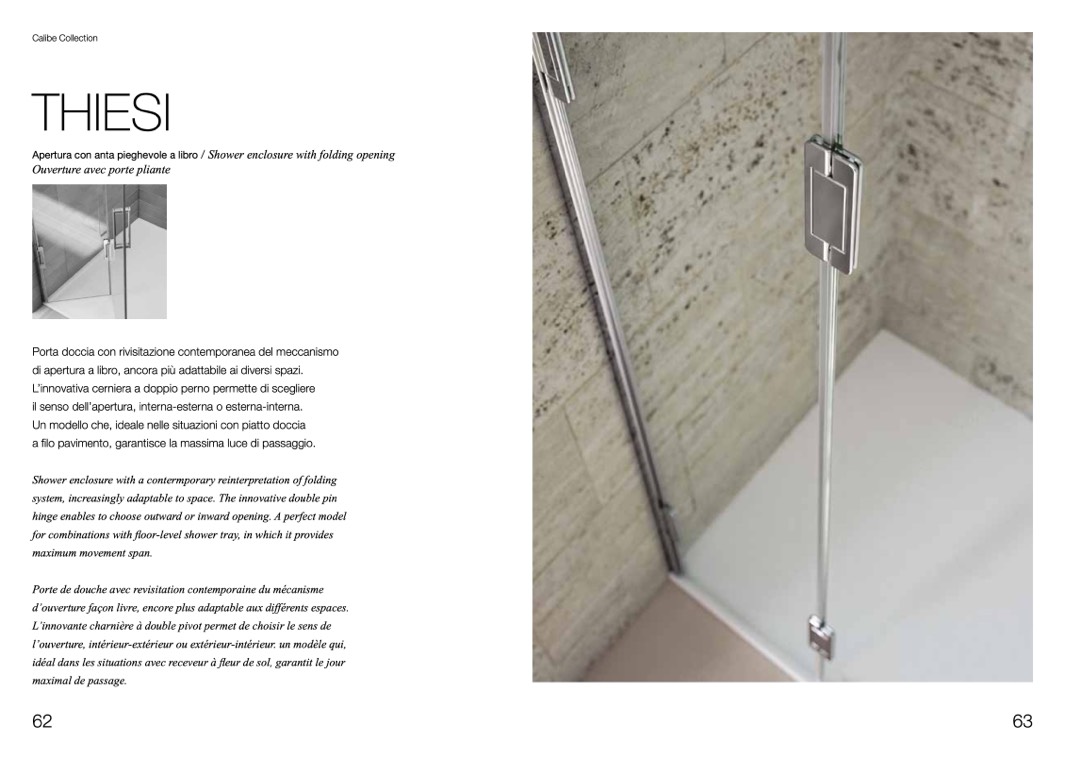 Apertura con anta pieghevole a libro / Shower enclosure with folding opening
