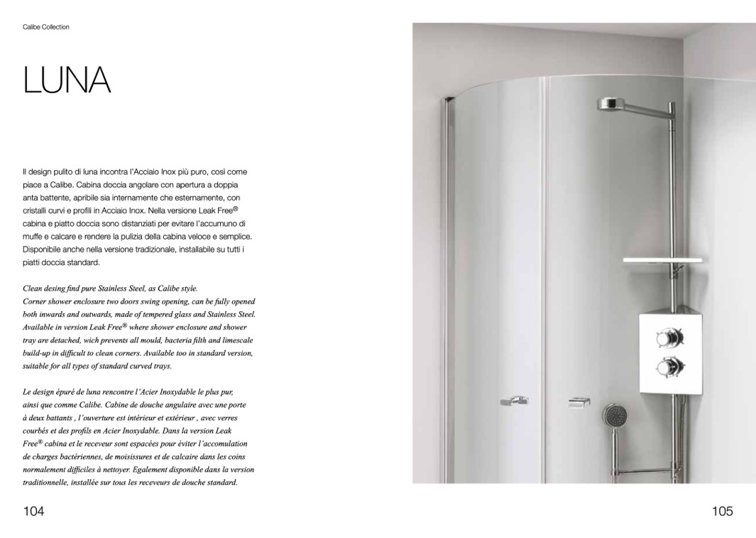 cristalli curvi e profili in Acciaio Inox. Nella versione Leak Free®
