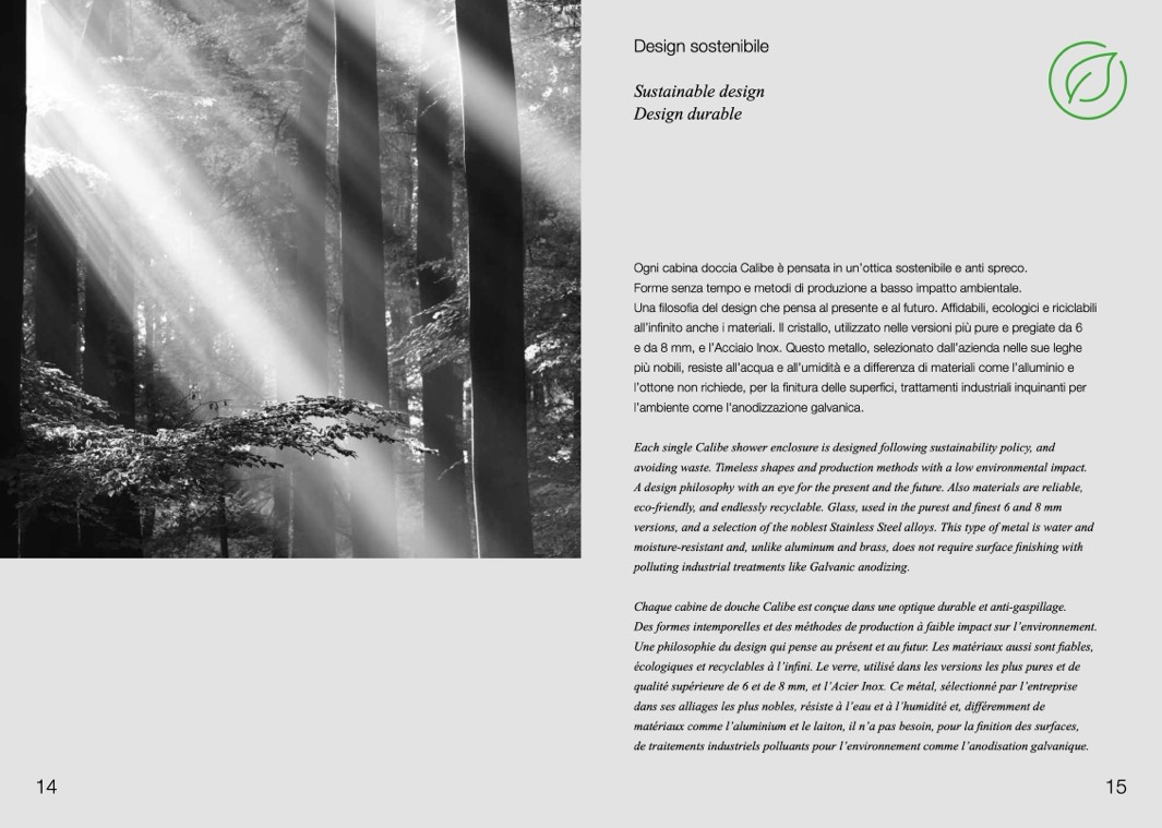 Each single Calibe shower enclosure is designed following sustainability policy, and