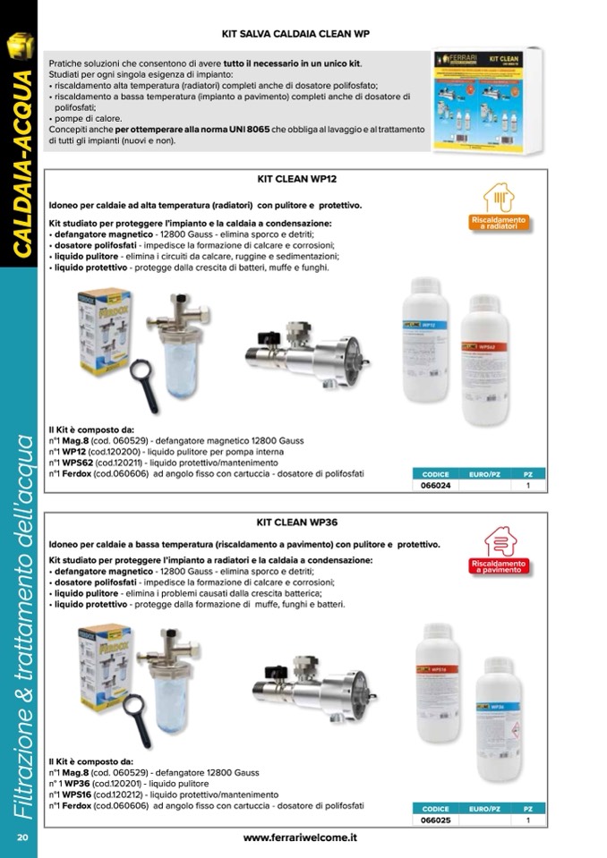 Idoneo per caldaie a bassa temperatura (riscaldamento a pavimento) con pulitore e protettivo.