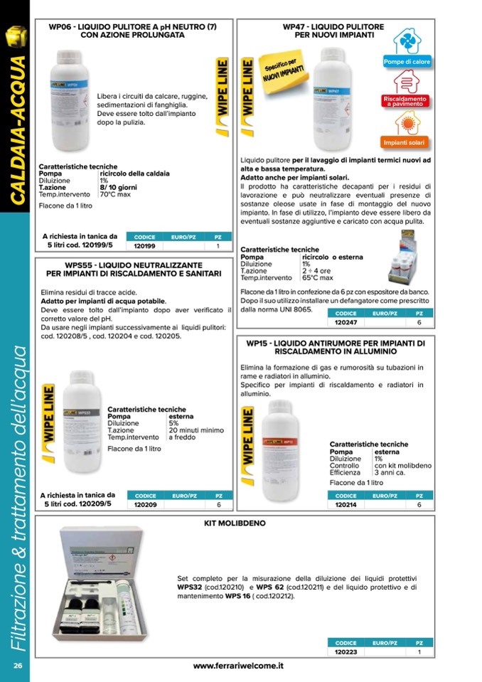 WPS32 (cod.120210) e WPS 62 (cod.120211) e del liquido protettivo e di