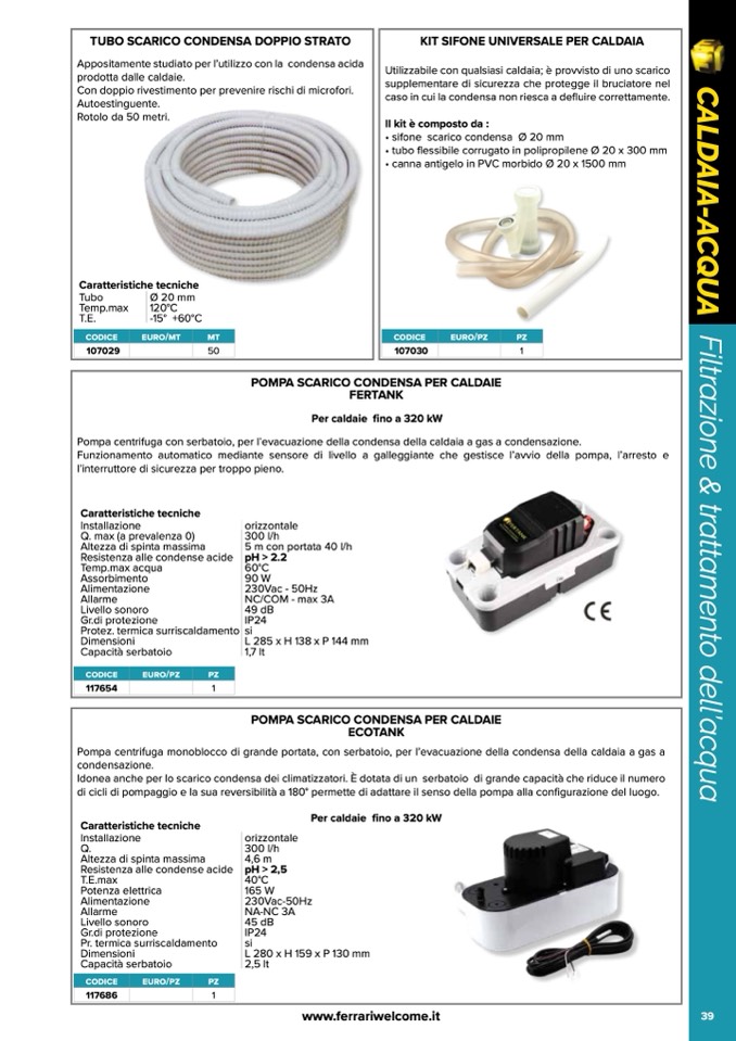 • sifone scarico condensa Ø 20 mm