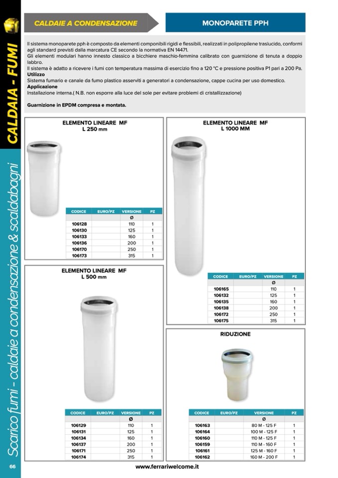 Il sistema monoparete pph è composto da elementi componibili rigidi e flessibili, realizzati in polipropilene traslucido, conformi