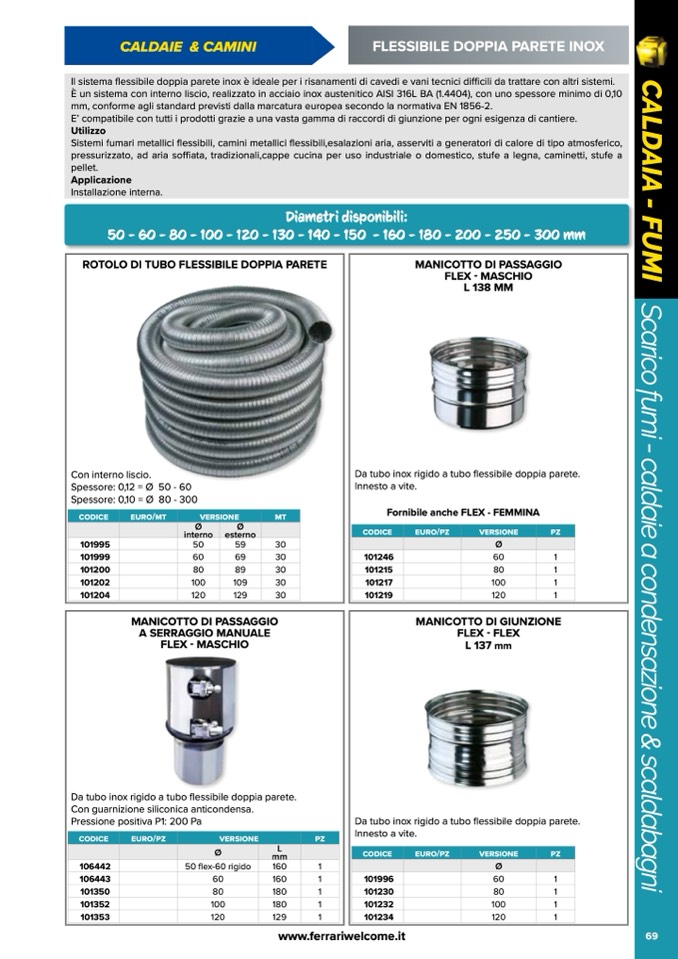 Sistemi fumari metallici flessibili, camini metallici flessibili,esalazioni aria, asserviti a generatori di calore di tipo atmosferico,