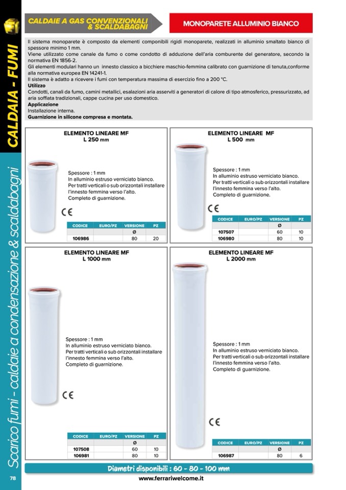 Il sistema monoparete è composto da elementi componibili rigidi monoparete, realizzati in alluminio smaltato bianco di