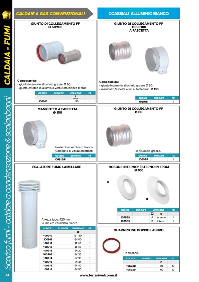 • giunto esterno in alluminio verniciato bianco Ø 100.