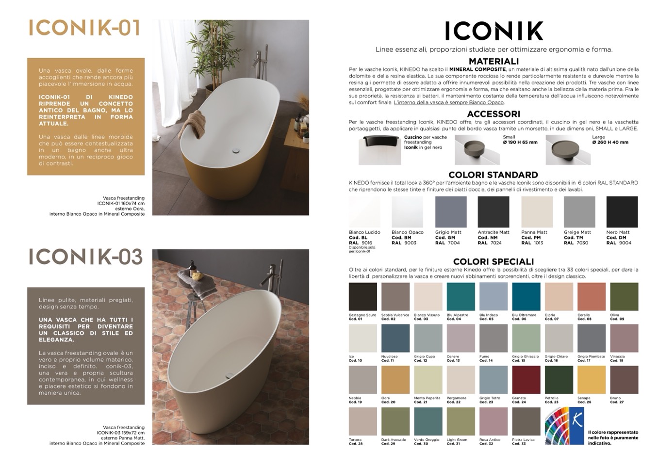 KINEDO fornisce il total look a 360° per l’ambiente bagno e le vasche Iconik sono disponibili in 6 colori RAL STANDARD