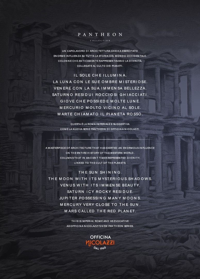 ASOFFICINA NICOLAZZI'SNEW PANTHEON SERIES.
