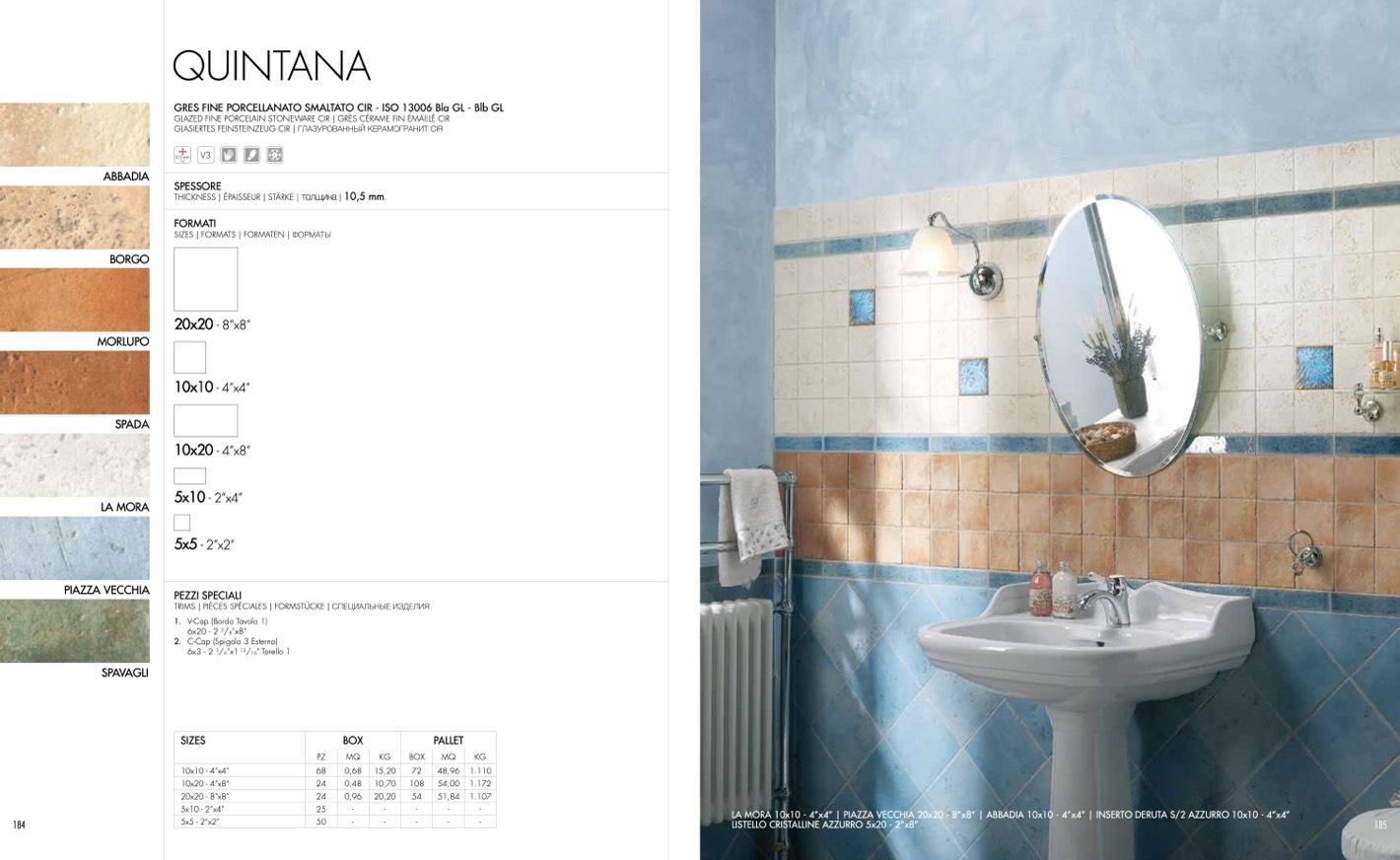 LA MORA 10x10 - 4”x4” | PIAZZA VECCHIA 20x20 - 8”x8” | ABBADIA 10x10 - 4”x4” | INSERTO DERUTA S/2 AZZURRO 10x10 - 4”x4”