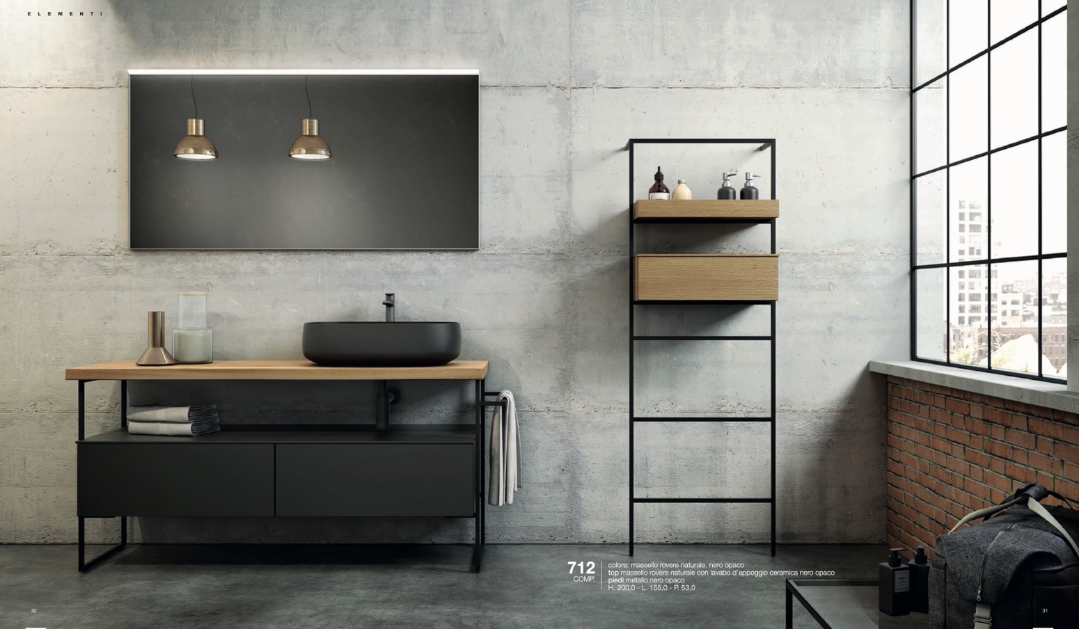 top massello rovere naturale con lavabo d’appoggio ceramica nero opaco