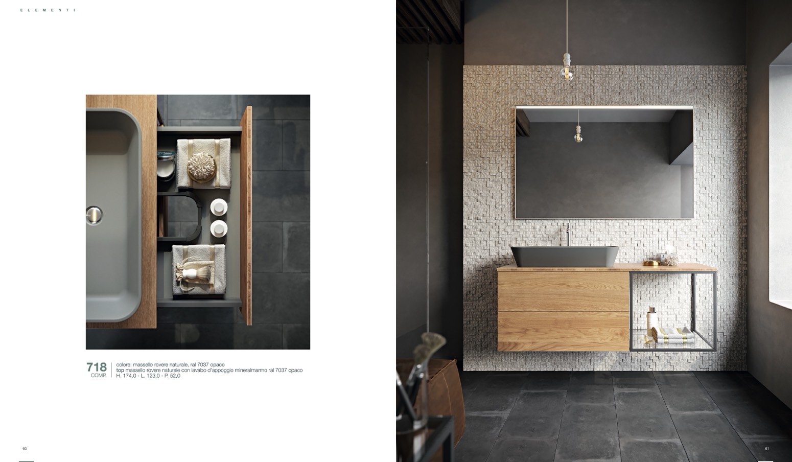colore: massello rovere naturale, ral 7037 opaco